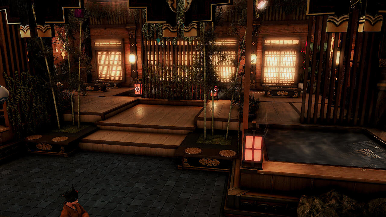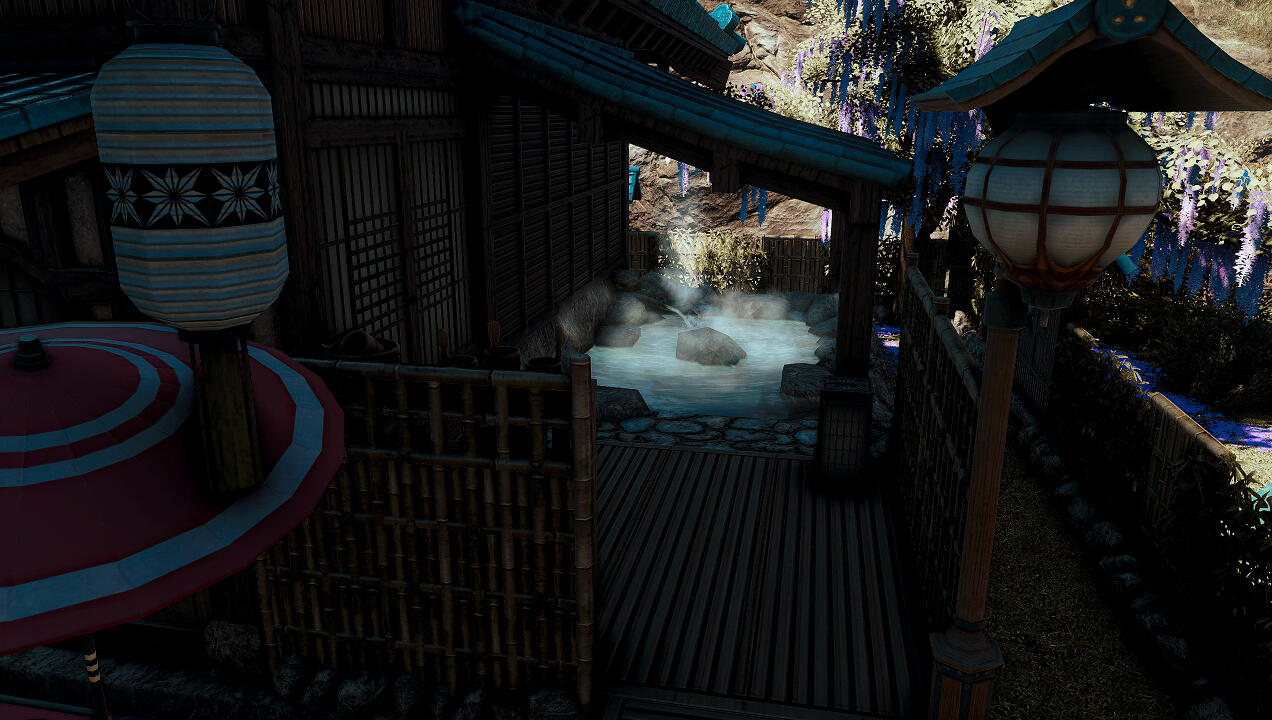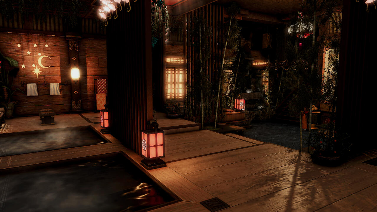 Just a cozy interior and welcoming staff.Take a break and rejuvenate from weekend partying in any of several indoor and outdoor baths surrounded by good company and a serene, soothing atmosphere.Doors are open 24/7 for use of its amenities.The House does not take a cut of any profits. All gil you give to a staff member goes directly to them!We exist for enjoyment, service, and safety- Not for profit.